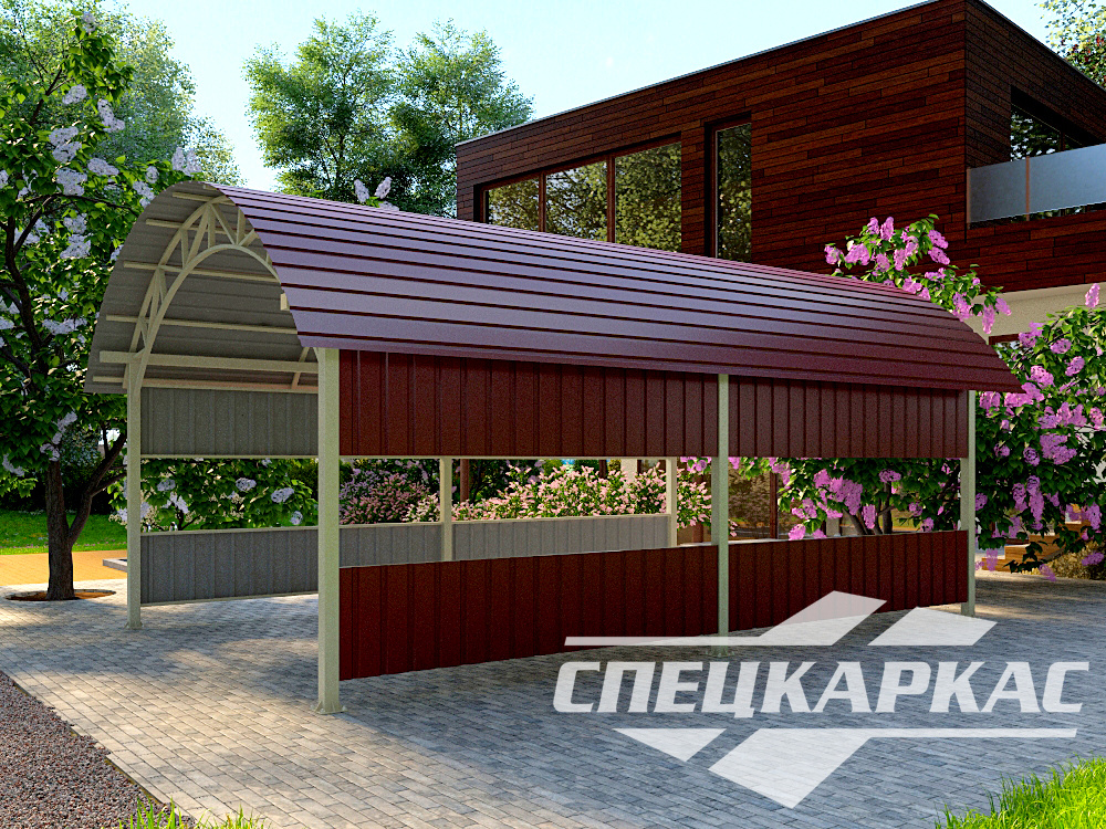 Купить навесы из профнастила на заказ. Более 15 готовых проектов. Профнастил можно использовать и в остальных моделях «Спецкаркас», которых в каталоге более 300. Доставка, установка под ключ — бесплатно в пределах 20 км от Москвы.